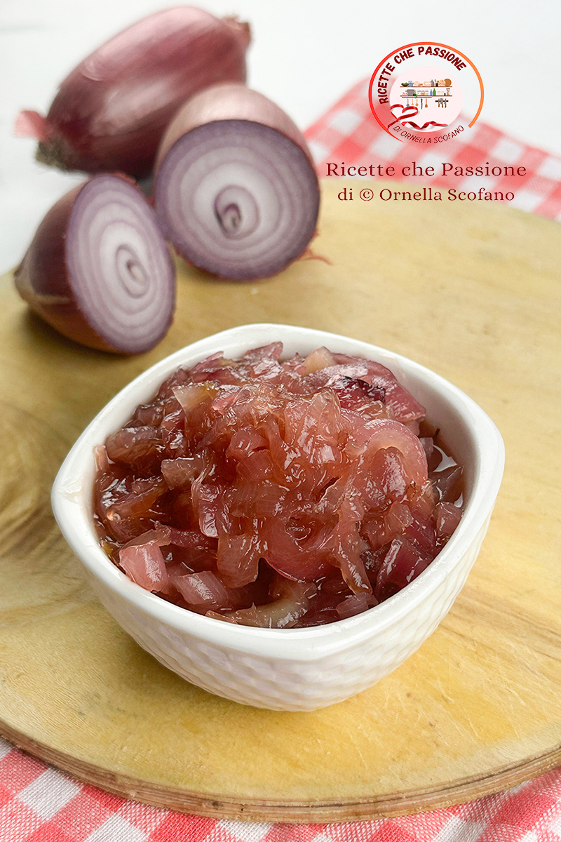 Cipolle caramellate veloci in padella, una delizia da gustare con i formaggi, o come contorno per carne o pesce. Io la preparo con poco zucchero all’occorrenza, ma si può anche cuocere con più zucchero e conservare in vasetto per lungo tempo. Amo gustarla su dei crostini con formaggio, o perfetta come già detto con carne arrosto, ma anche con pesce, di solito la faccio con tonno o pesce spada, o per accompagnare il baccalà fritto, ma buonissima anche per arricchire i nostri piatti, come una buona insalata di patate. E’ così buona che si gusta con piacere in una infinità di piatti. Io la preparo spesso e soprattutto quando organizzo pranzi o cene in compagnia, piace a tutti e rende ogni piatto più sfizioso e ricercato, poi in Calabria abbiamo le nostre buone cipolle rosse di Tropea, e quindi non riusciamo a resistere alla tentazione di prepararla, ma per curiosità ho provato anche con comuni cipolle rosse, davvero ottima anche in quel caso, cambia logicamente il gusto, più intenso, ma anche il colore più scuro.