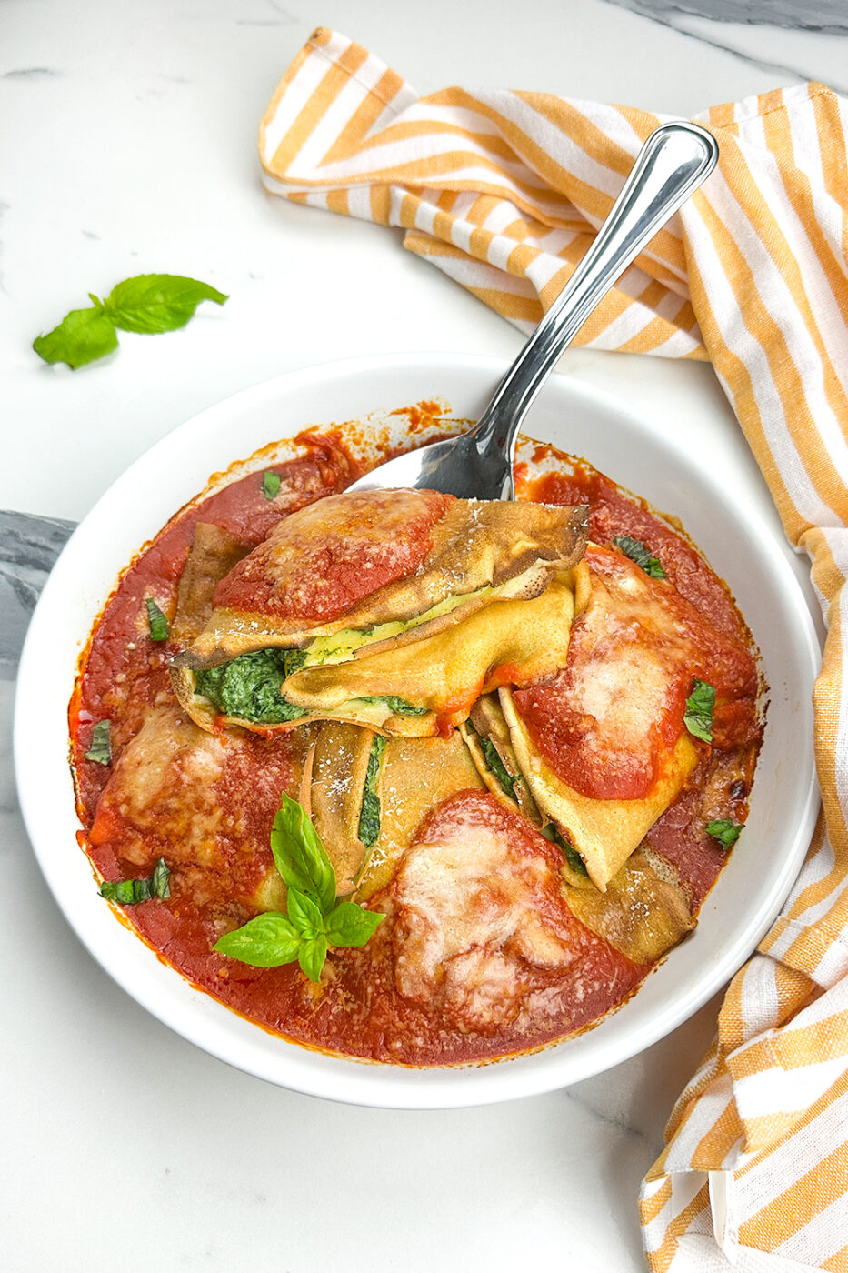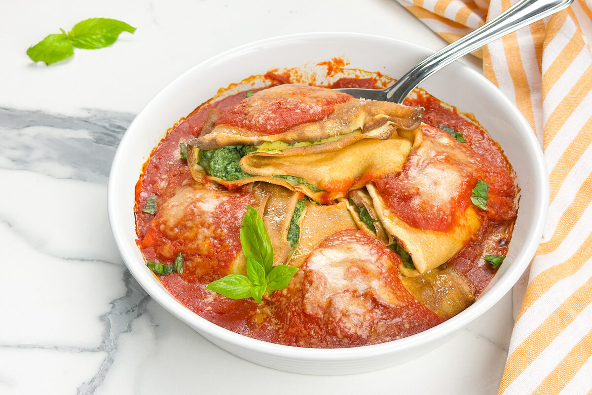 Buonissime le crespelle con ricotta e spinaci al forno con un semplice sugo di pomodoro che avvolge in un goloso abbraccio le crespelle rendendole morbide e con un gusto veramente speciale. Preparare le crespelle è un attimo e con la mia ricetta sarà ancora più semplice, intanto che prepariamo le crespelle cuociamo anche gli spinaci, senza acqua, velocemente in padella, così saranno ben asciutti e perfetti per il ripieno con la ricotta. La ricotta sceglietela buona, farà la differenza, io consiglio ricotta di pecora o mista, io questa volta ho usato ricotta di bufala, ma vi dico la verità, preferisco quella di ricotta che uso solitamente, è diversa, anche nella consistenza, più buona. Vediamo allora come preparare queste buonissime crespelle con spinaci e ricotta al sugo al forno, sono perfette per il pranzo di Natale, ne hanno anche i colori del Natale.