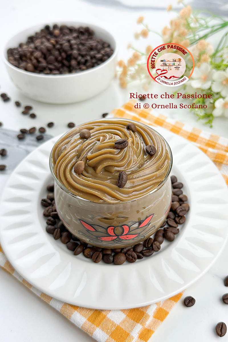 Decoriamo con qualche chicco di caffè o del caffè solubile. Ci sta bene anche un po’ di cioccolato grattugiato.