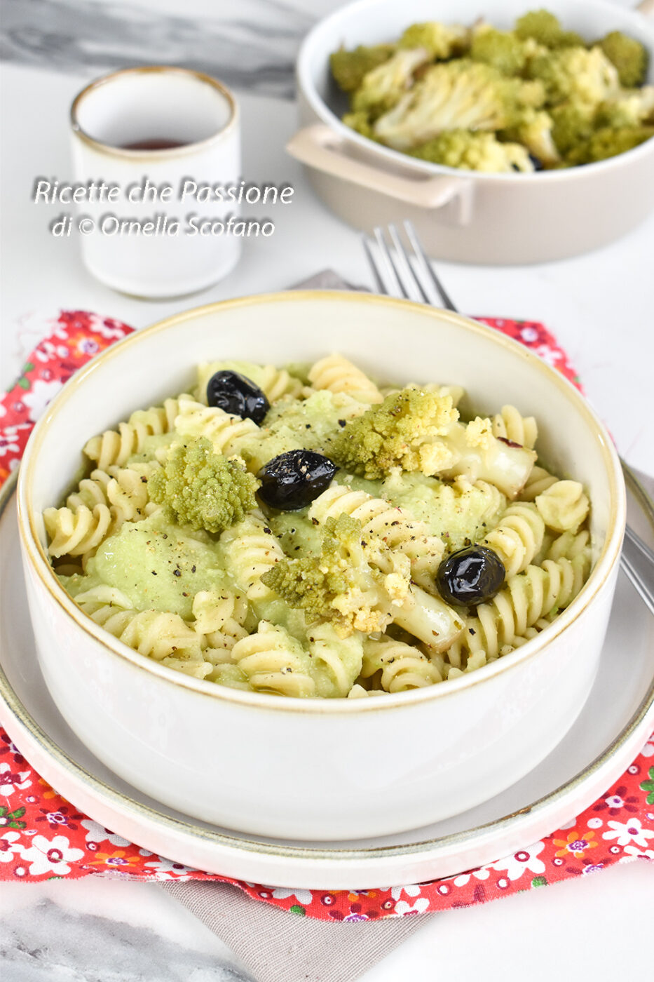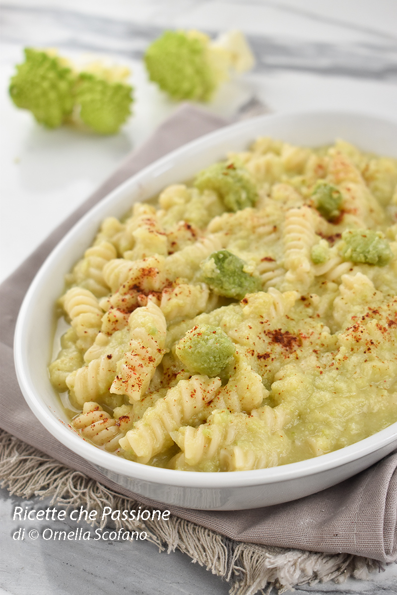 E rieccocoi con una buona ricetta con broccolo romanesco, conosciuto anche come cavolo romano, spesso confuso con un cavolfiore in realtà non lo è, particolare per la sua forma, con tante rose a spirale dalla base alla punta, sempre più piccole e strette dal colore verde brillante. Durante la stagione di raccolta prevalentemente in inverno è consigliato consumarne tanto, grazie alle importanti proprietà antinfiammatorie aiuta a rendere più forte il sistema immunitario. Oggi ho voluto rifare questo delizioso piatto di pasta cremoso con broccolo romano, che a dire la verità avevo già preparato un pio di settimane fa, mi era piaciuta davvero tanto, così ho pensato di rifare la ricetta, e proporla anche a voi, così potrete sicuramente gustare un buon primo di pasta con tante verdure, gustoso, facile e leggero senza troppi condimenti, ma se vi va di arricchirlo potete aggiungere dalla pancetta, della salsiccia sbriciolata.