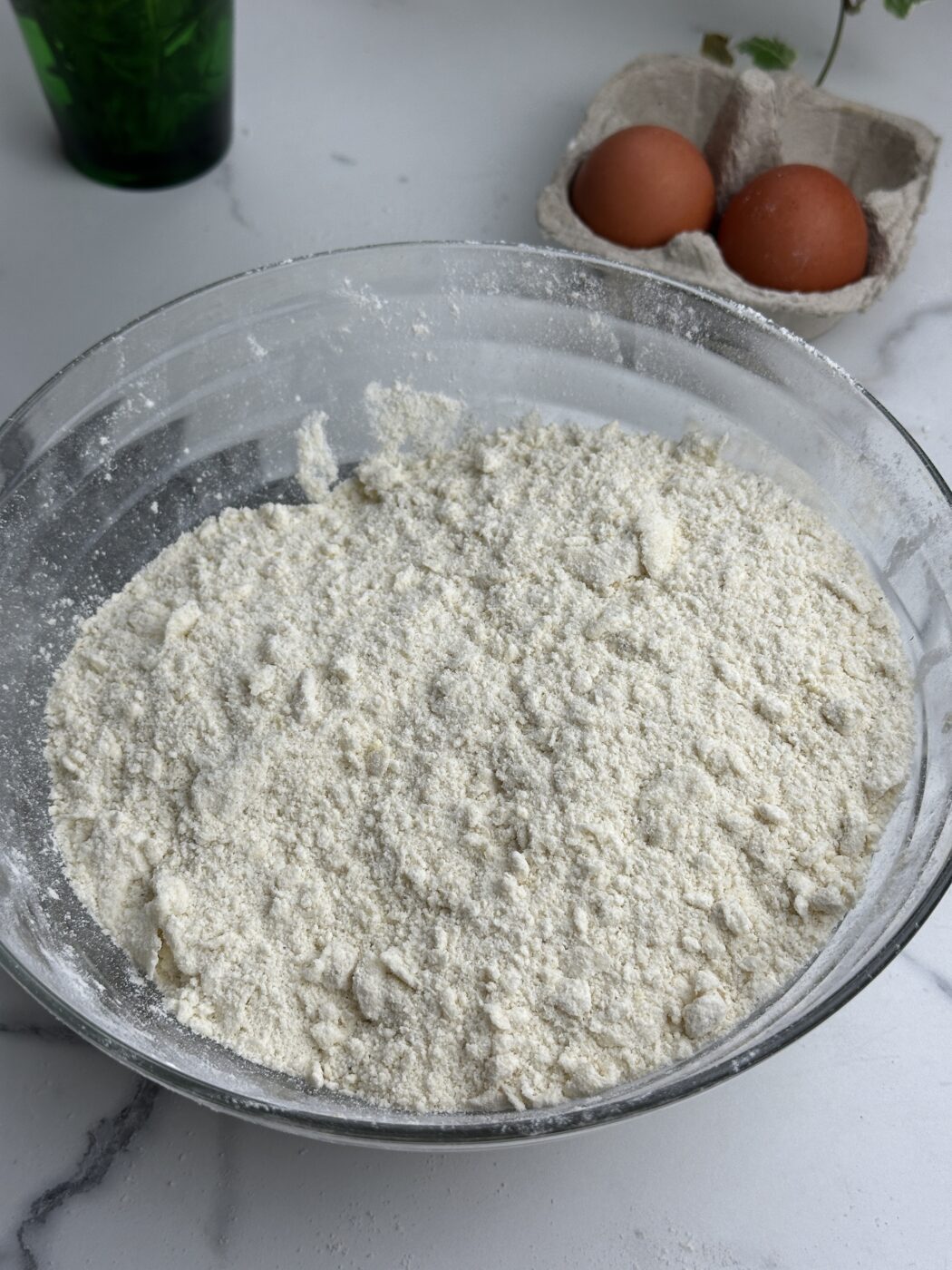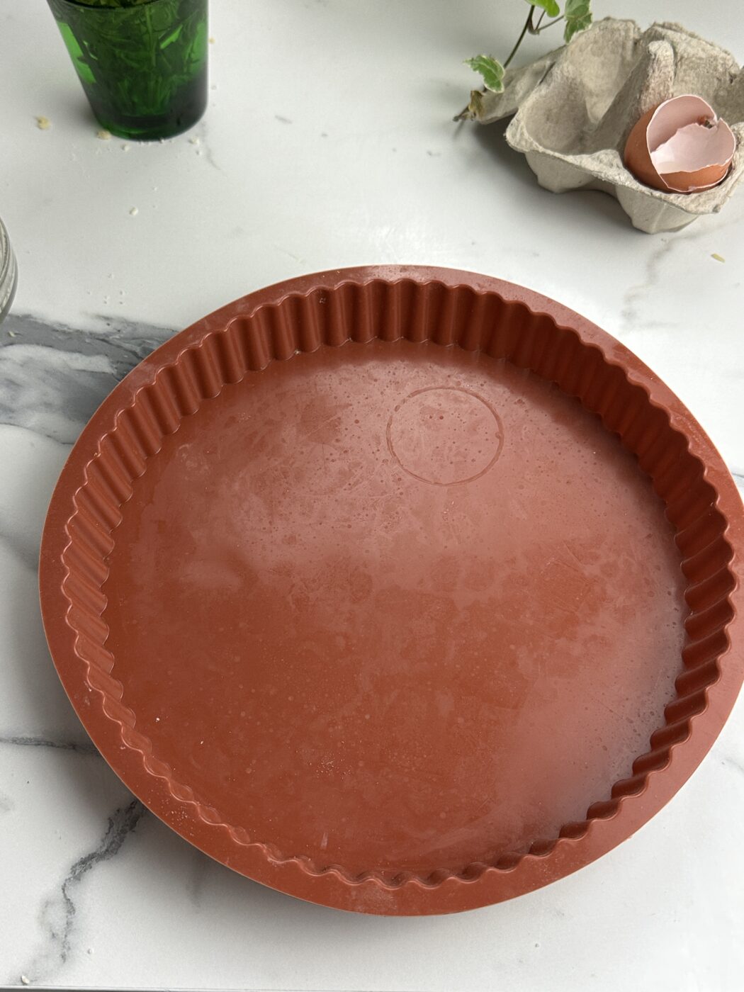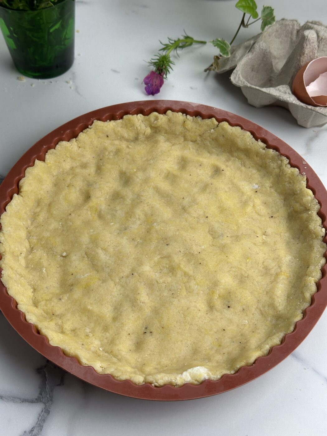 Per preparare la sbriciolata io ho usato uno stampo in silicone per crostata da 26-28 cm, che non serve imburrare ed infarinare, in caso di stampo classico lo imburriamo ed infariniamo.