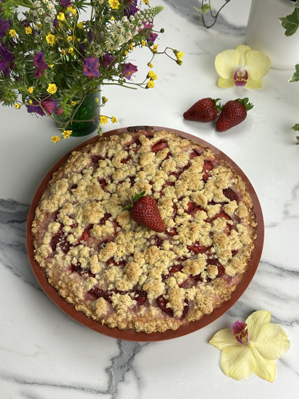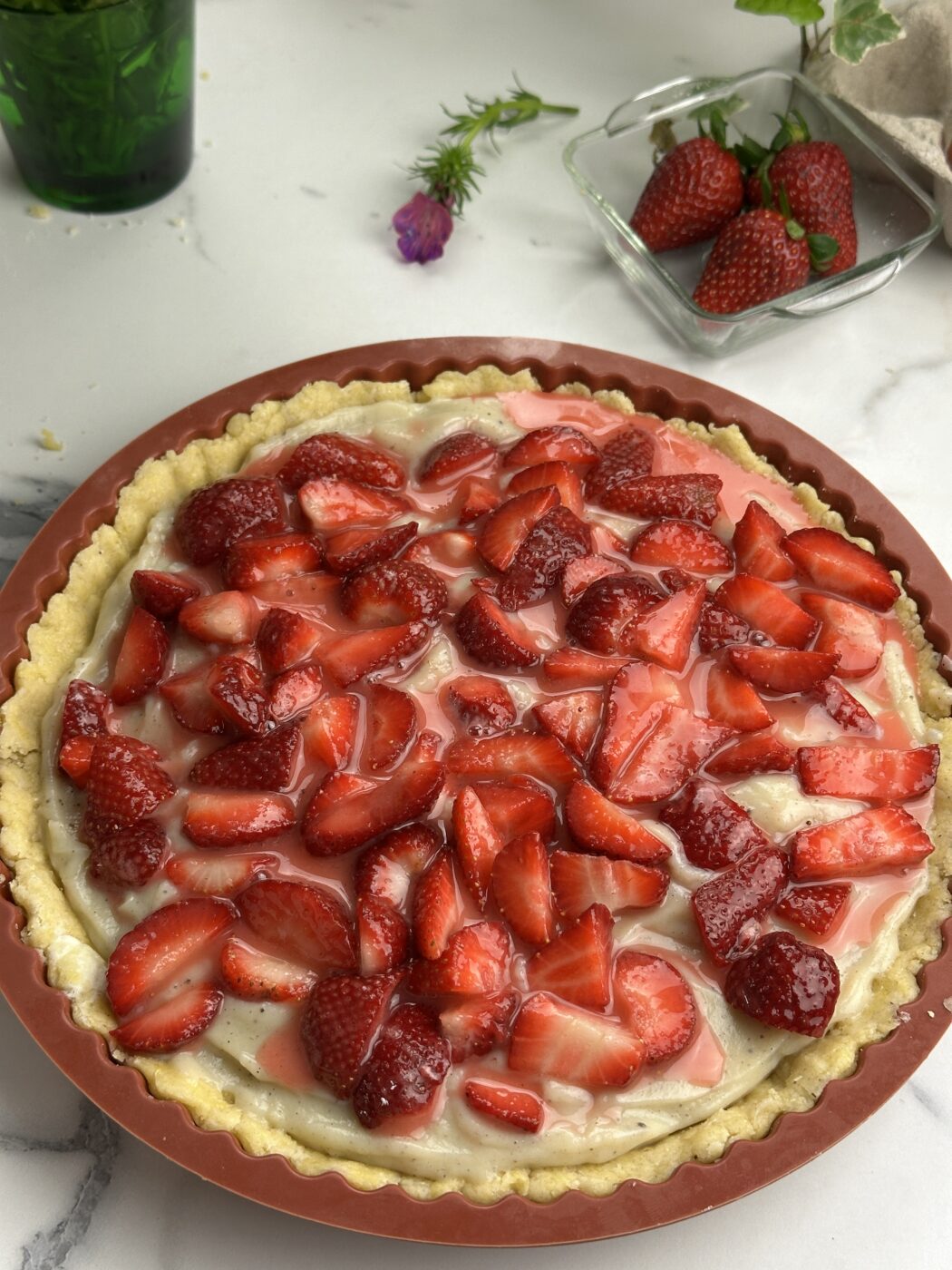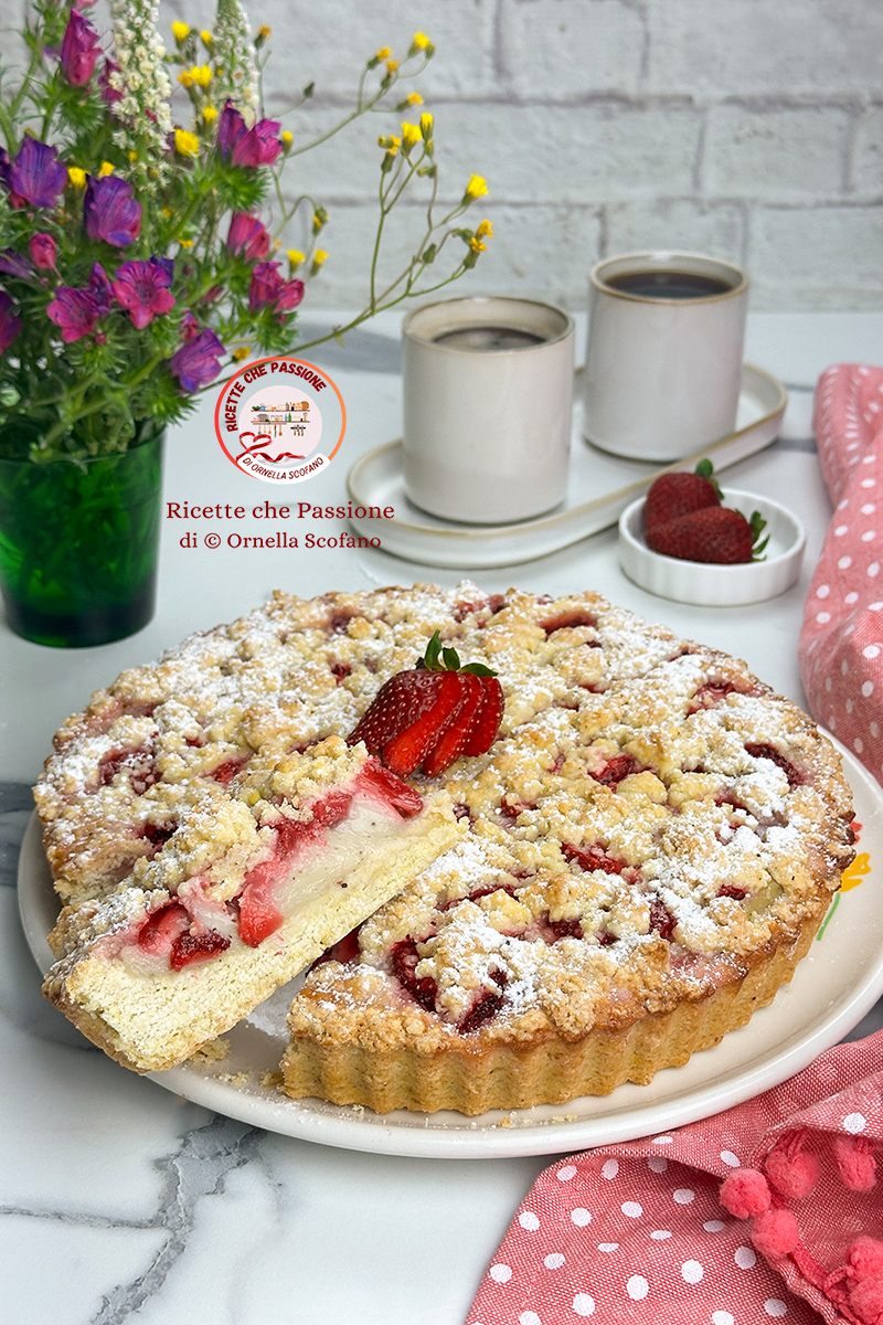 La sbriciolata con crema e fragole si conserva in frigo fino a 3 giorni.