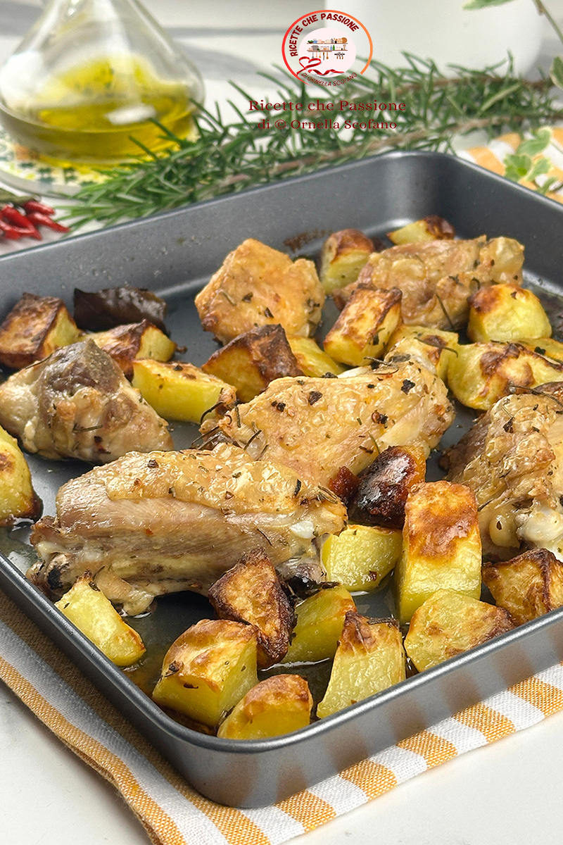 Passaggi preparazione sovracosce di pollo al forno con patate