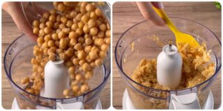 Per questa ricetta ho usato i ceci in scatola, quindi vi basta sgocciolarli e sciacquarli ben bene sotto l’acqua corrente, altrimenti QUI trovate come cuocere i ceci secchi e una volta cotti proseguite come di seguito. Mettete i ceci nel boccale del mixer e azionate fino a ridurli in poltiglia, potete fare questa operazione in più riprese se il vostro frullatore è piccolo.