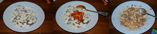 A cottura spegnete, mettete la carne trita in una ciotola e lasciate raffreddare. Tagliate la mozzarella a dadini e aggiungetela nella ciotola con la carne trita ormai fredda.