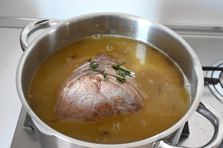 Non far bollire troppo il fondo: la cottura dolce e lenta è la chiave per una carne morbidissima.