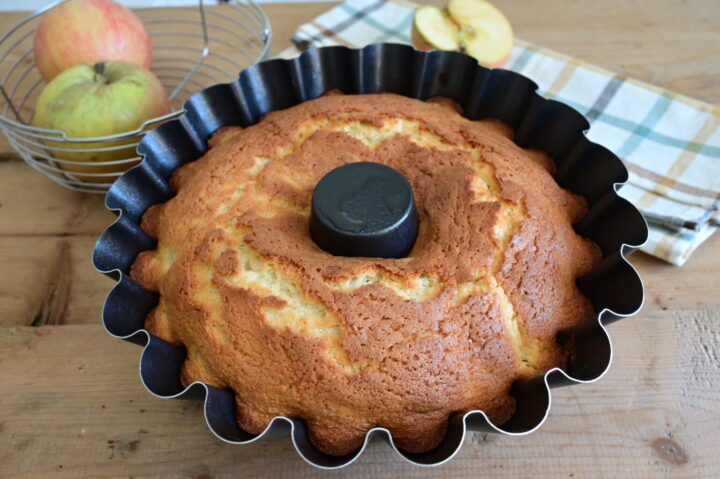 In questa versione ho scelto di inserire le mele direttamente nell’impasto, tagliate a pezzetti piccoli, e non disposte sopra. Questo dettaglio fa davvero la differenza: le mele si distribuiscono in modo uniforme, rilasciano la loro umidità durante la cottura e rendono la ciambella incredibilmente soffice, umida e mai asciutta, anche il giorno dopo. Niente mele che si bruciano in superficie, niente fette che affondano o seccano: solo un impasto morbido, profumato e pieno di gusto.