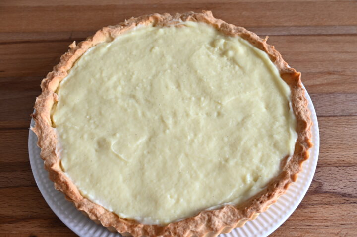 Lasciamo raffreddare completamente la base poi mettiamo all’interno la crema pasticcera fredda.