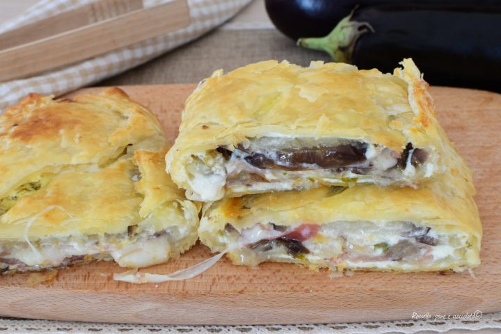 Rustico di Pasta Sfoglia Ripieno di Melanzane Ricotta e Prosciutto
