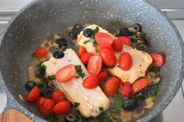 Merluzzo con pomodorini: aggiungi pomodorini freschi in cottura