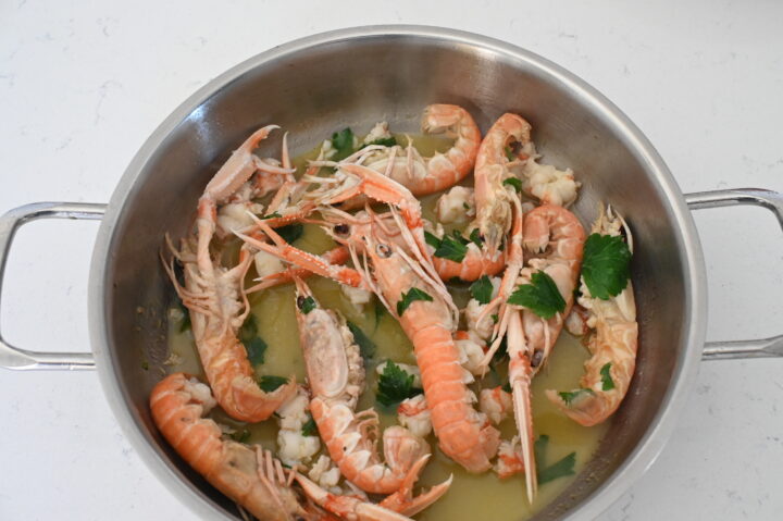 Non cuocere troppo gli scampi: bastano pochi minuti, altrimenti diventano gommosi.