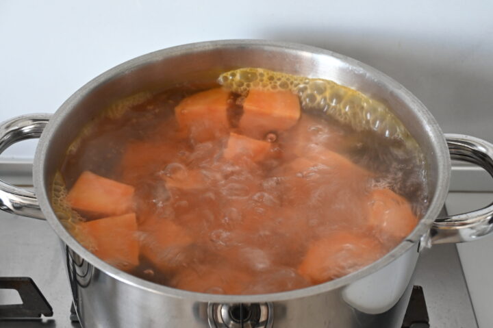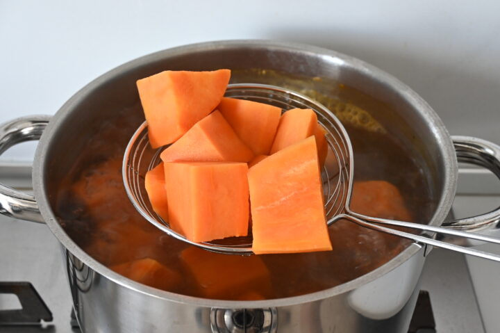 Metti sempre le patate dolci in acqua fredda, poi accendi il fuoco: cuoceranno in modo uniforme.