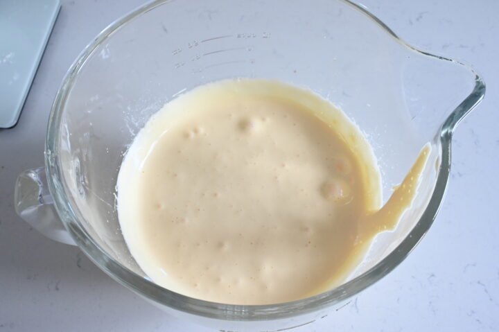 In circa 60 secondi i liquidi saranno perfettamente amalgamati al composto di uova.