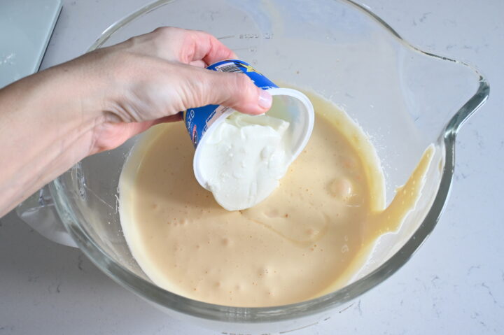 Subito dopo, aggiungete lo yogurt bianco (o greco) a cucchiaiate.