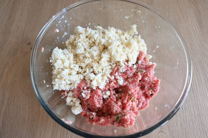 Unisci il pane alla carne ed impasta.