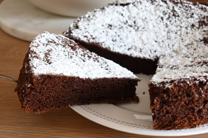 La torta al cioccolato e mandorle si conserva morbida per 3–4 giorni sotto una campana per dolci, a temperatura ambiente.