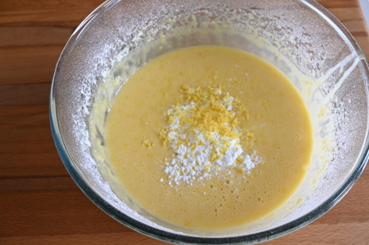 Aggiungi il lievito e la scorza del limone, monta per qualche minuto.