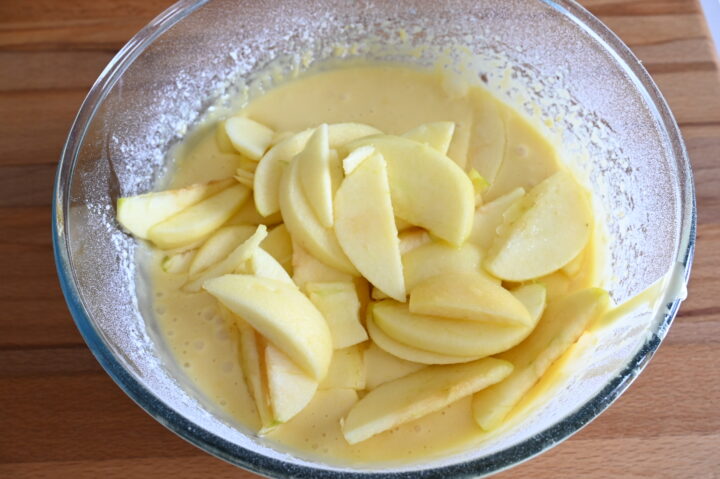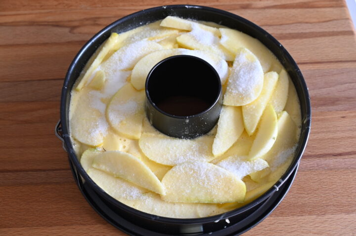 Cottura: Versa l’impasto in una teglia (22-24 cm) imburrata. Disponi le mele sopra a raggiera o tuffale direttamente nell’impasto per un risultato più rustico.