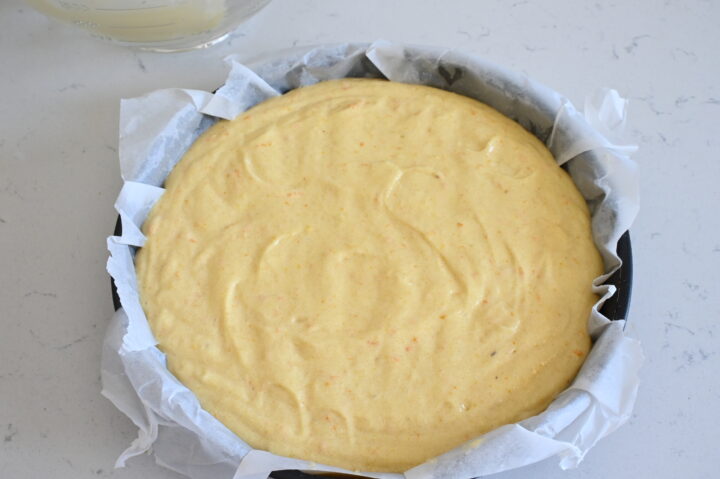 Verso in uno stampo da 22-24 cm coperto con carta forno.