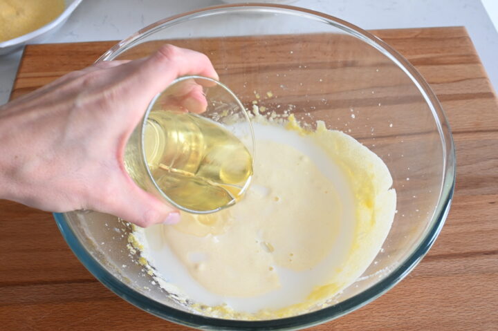 Poi l’olio di semi e monta per qualche minuto.
