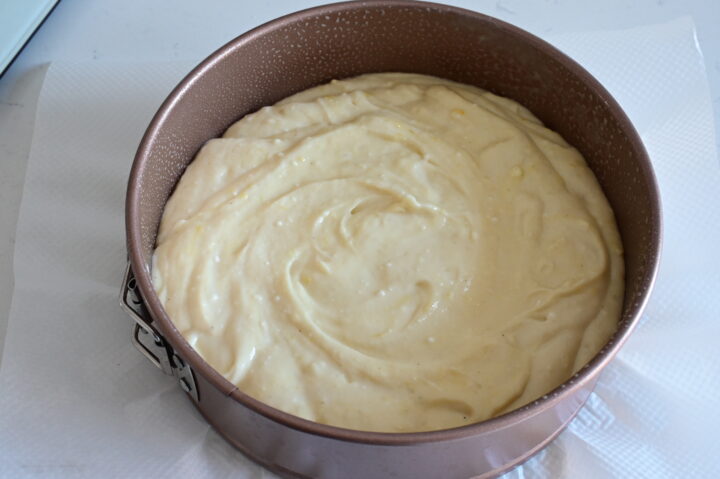 Versiamo il composto in una teglia imburrata o coperta da carta forno da 22 cm ed inforniamo in modalità statica a 180° per 40 minuti circa.