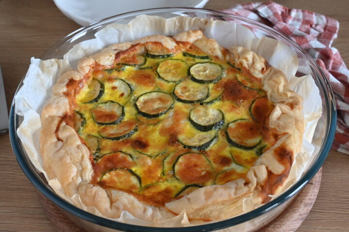 La torta si conserva in frigorifero per 2 giorni. Per far tornare la sfoglia croccante come appena sfornata, ti consiglio di scaldare le fette per qualche minuto in forno o in friggitrice ad aria, evitando il microonde che la renderebbe gommosa.