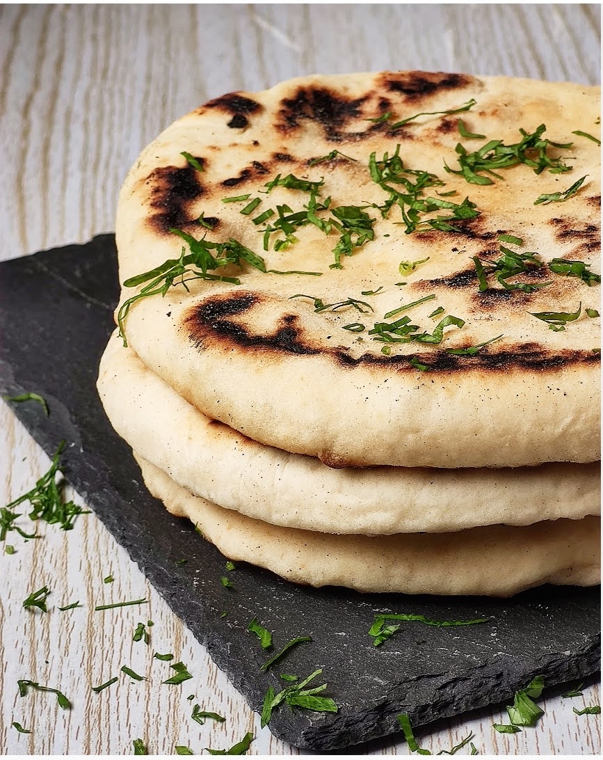Bastano davvero pochissimi ingredienti ed una cottura veloce su una piastra o su una comunissima padella per avere un pane perfetto da portare in tavola per accompagnare ogni tipo di pietanza. Lo spessore può variare da meno di un millimetro a pochi centimetri, in modo che possa essere facilmente mangiato senza essere affettato. Possiamo perciò spezzarlo e pucciarlo negli intingoli o nelle salse o, perché no, aprirlo a metà e farcirlo a piacimento con affettati, salumi e formaggi o, ancora arrotolarlo o, addirittura, cuocerlo nel forno anziché sulla piastra e condirlo come se fosse una pizza o una pinsa romana.