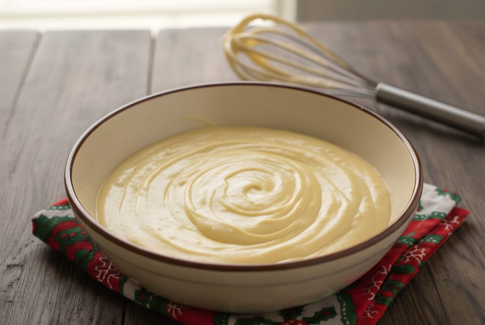A parte montiamo a neve la panna e aggiungiamo 1 cucchiaio di zucchero continuando a mescolare ancora un po’.