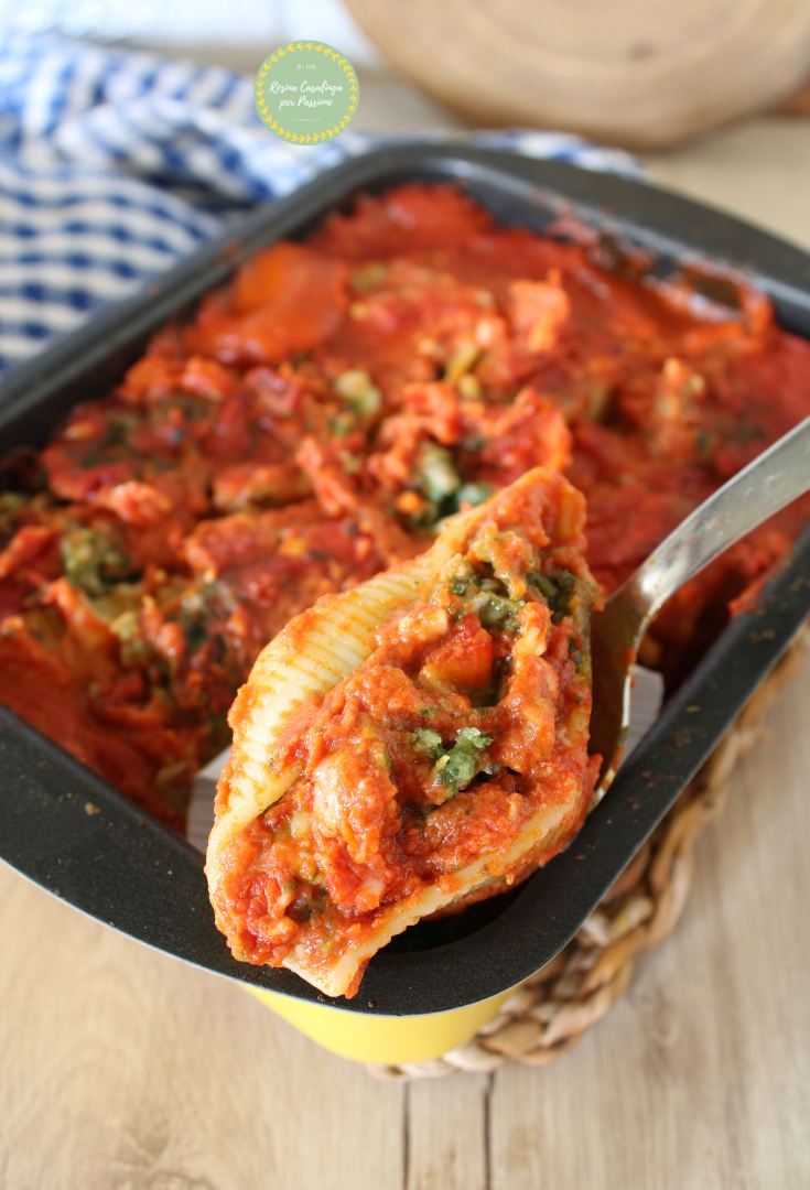 I CONCHIGLIONI RIPIENI DELLA ZIA ROSA, molto deliziosi e saporiti. Con i conchiglioni si sa che ci si può sbizzarrire a farcirli con gli ingredienti che si preferiscono, questi sono veramente semplici e speciali, con la bieta che è tra gli ortaggi invernali che preferisco. Sotto vi scriverò come sempre ingredienti e procedimento, ma prima voglio raccontarvi la storia di questa ricetta che arriva dal quaderno della zia Rosa, non era una mia zia, ma della mia “amica di vita” Carmelina. La zia Rosa l’ho conosciuta e la ricordo ancora con i suoi modi di fare molto dolci e garbati, non potevo portare la sua ricetta nel blog e darle il suo nome. I CONCHIGLIONI DELLA ZIA ROSA sono una vera e propria istituzione nei giorni di festa per la sua famiglia, sicuramente perché sono buonissimi e poi anche perché cucinare i piatti di chi non è più tra di noi, ci aiuta a mantenere vivo il loro ricordo. Sono sicura che entreranno tra i vostri primi preferiti, vi lascio la ricettina, potrebbe piacervi anche: CONCHIGLIONI RIPIENI, PRIMI PIATTI CON LA PASTA, MENU’ DEL PRANZO DI NATALE. SBIZZARRITEVI AD IMPIASTRICCIARE!