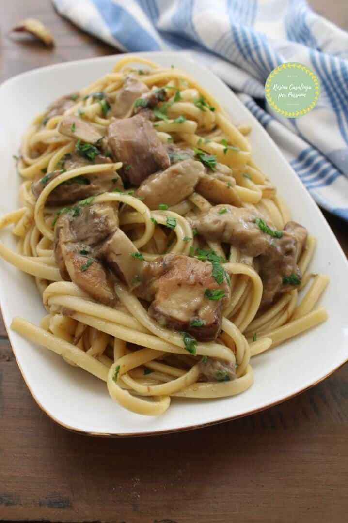 Le LINGUINE AI FUNGHI PORCINI, un grande classico della cucina italiana, un vero must tra le ricette d’autunno. Una piatto quello che vi propongo oggi, semplice, veloce, squisito e con pochi ingredienti, saporiti e senza panna ovviamente! Una ricettina storica di mia mamma quindi super collaudata, è stata proprio lei molto orgogliosamente a suggerirmi di pubblicarla sul blog, e come potevo dirle di no? Sono sicura che conquisterà anche voi, hanno un sapore speciale. Tutto il sapore e la freschezza dei funghi, rigorosamente raccolti dal mio “fungaiolo” preferito, ovvero mio marito… lui quando sente che è arrivato il periodo dei funghi inizia ad organizzare le prime uscite, io quando sento che è arrivato il periodo dei funghi inizio già ad avere l’acquolina in bocca. Mio padre me li comprava e si toglieva il pensiero, invece Antonio si perde mattinate o pomeriggi interi in giro per funghi. Vi lascio la ricettina, potrebbe interessarvi anche: Reginette ai funghi porcini e crema di parmigiano, Cavatelli con funghi ovoli e pomodorini. SBIZZARRITEVI AD IMPIASTRICCIARE!