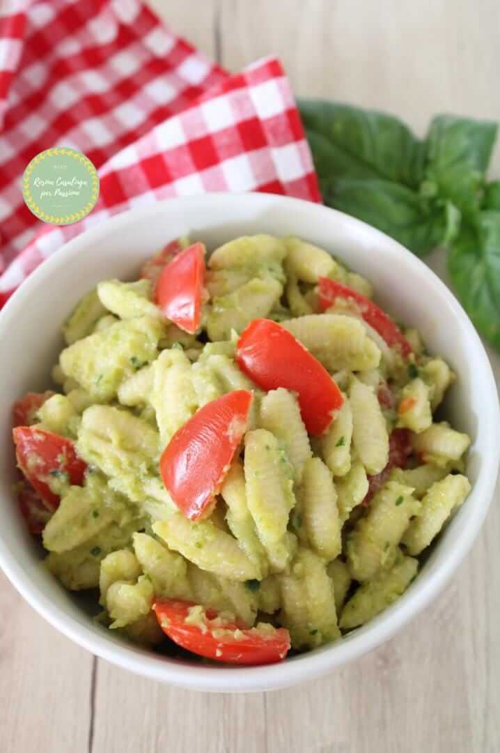 La PASTA FREDDA CON CREMA DI ZUCCHINE, un primo piatto perfetto per la stagione estiva. Un buon piatto colorato, leggero e delizioso che non appena arriva il caldo non potrete fare a meno di preparare. Questa pasta la amo particolarmente perchè molto profumata, la delicatezza della crema alle zucchine contrastano piacevolmente il profumo del basilico e la croccantezza dei pomodorini. Quando le giornate iniziano ad essere calde, mi prende la voglia del mare, per una giornata al mare farei carte false e di conseguenza tiro fuori i miei assi nella manica, piatti freddi che si possono preparare in anticipo così da poter stare in spiaggia il più possibile perché comunque il pranzo è già pronto in frigo, una volta tornata a casa, apparecchio e porto in tavola la PASTA FREDDA CON CREMA DI ZUCCHINE. Vi lascio la ricettina, potrebbe piacervi anche: INSALATE ESTIVE FARFALLE CREMA DI ZUCCHINE E SALMONE. SBIZZARRITEVI AD IMPIASTRICCIARE!