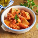 PACCHERI AL SUGO DI BACCALA’ E PATATE un primo piatto gustosissimo e saporito, cremoso a prova di scarpetta