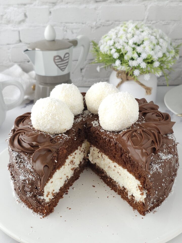 Salve amici, oggi vi propongo questa deliziosa torta al cioccolato con crema al cocco e cioccolato bianco da realizzare per qualsiasi occasione speciale. Una farcitura favolosa con una crema al mascarpone, cioccolato bianco e cocco che vi sorprenderà. Di seguito troverete la ricetta..