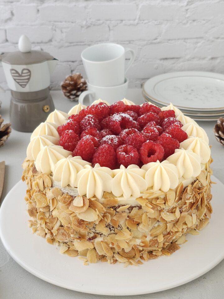 Salve amici, oggi vi propongo questa deliziosa torta alla crema diplomatica e lamponi realizzata con un cake alle mandorle. Una ricetta adatta per qualsiasi occasione speciale così da stupire amici e parenti. Anche per le festività natalizie questa torta può essere ideale da preparare. Il connubio crema diplomatica e lamponi freschi fa impazzire. Di seguito troverete la ricetta..