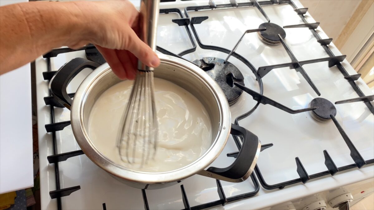 Aggiungiamo il restante latte, mescolando sempre per rendere il composto il più liscio possibile.