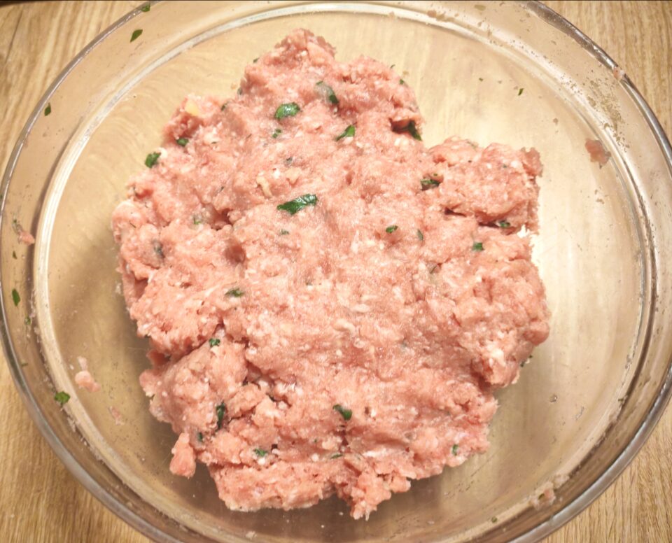 In una ciotola mettete la carne unite le patate schiacciate, il pecorino, l’uovo, il sale, il pepe, il prezzemolo e l’aglio togliendo l’anima è schiacciandolo. Mescolate tutti gli ingredienti.