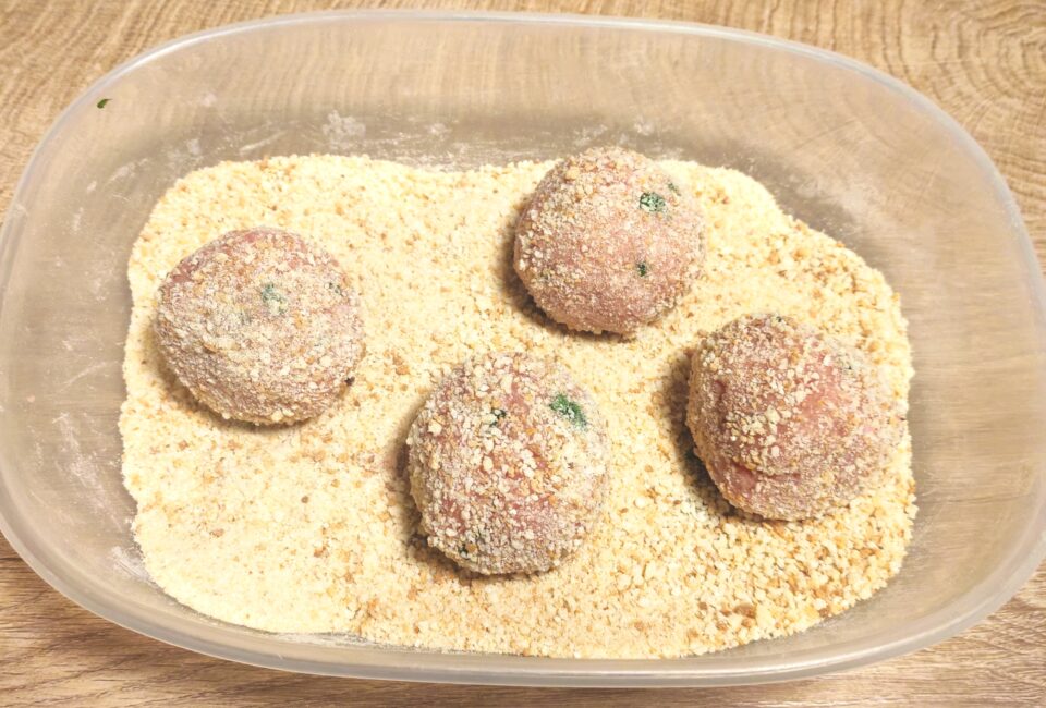 Ora preparate le polpette, io le ho fatte da 50 g circa, ma voi potete decidere di farle più grandi o ancora più piccole, poi passatele nel pangrattato.