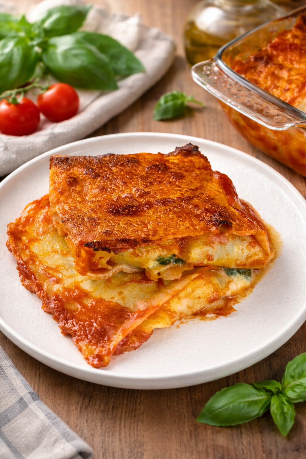 I fagottini di lasagna con spinaci e ricotta al forno sono un primo piatto raffinato e avvolgente, ideale per stupire con semplicità. Sfoglie di pasta all’uovo racchiudono un ripieno cremoso e delicato, dove la ricotta incontra la freschezza degli spinaci. Il tutto è adagiato su una profumata salsa al pomodoro che esalta i sapori senza coprirli. Una ricetta che unisce tradizione e cura dei dettagli, perfetta per un pranzo speciale o una cena elegante.