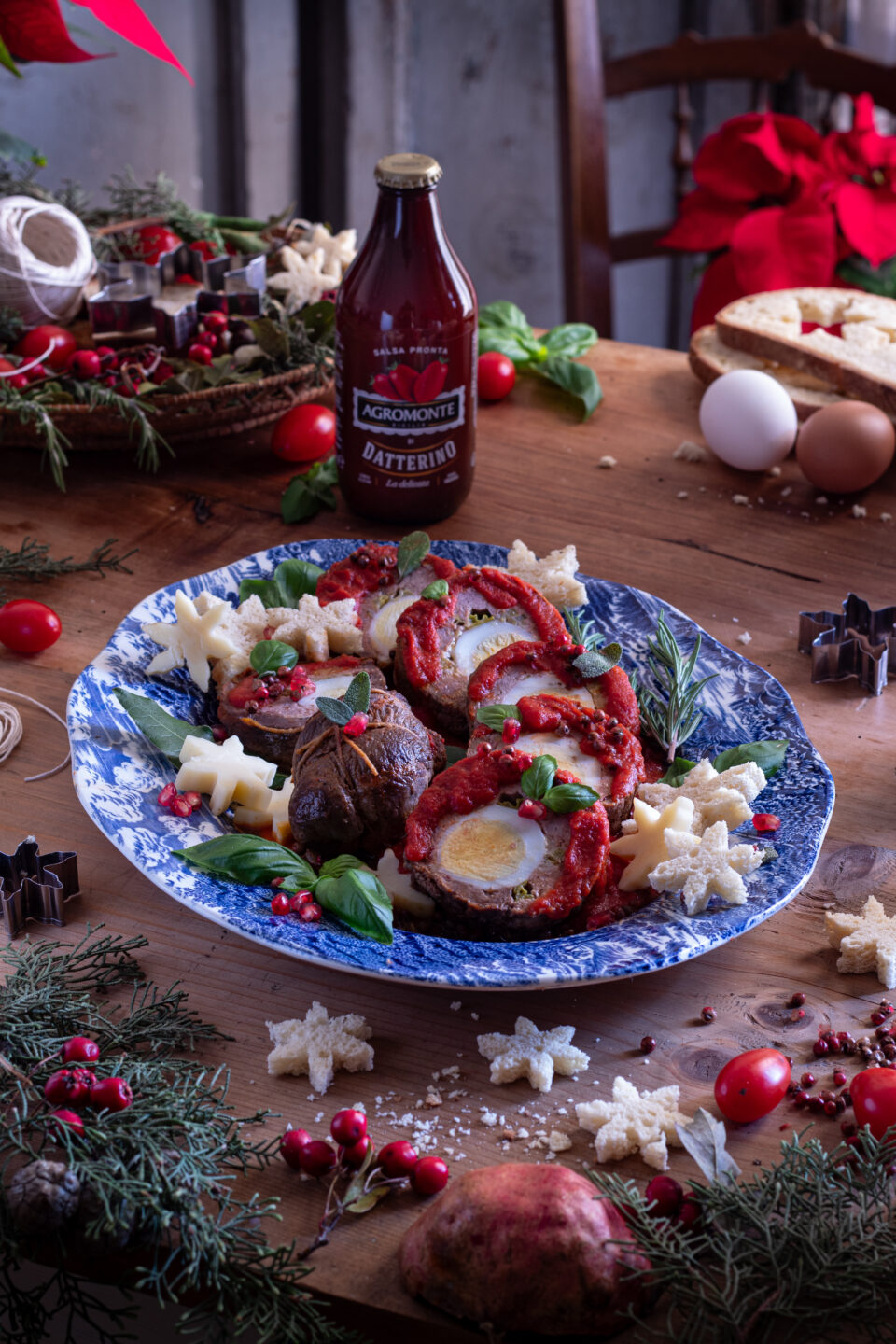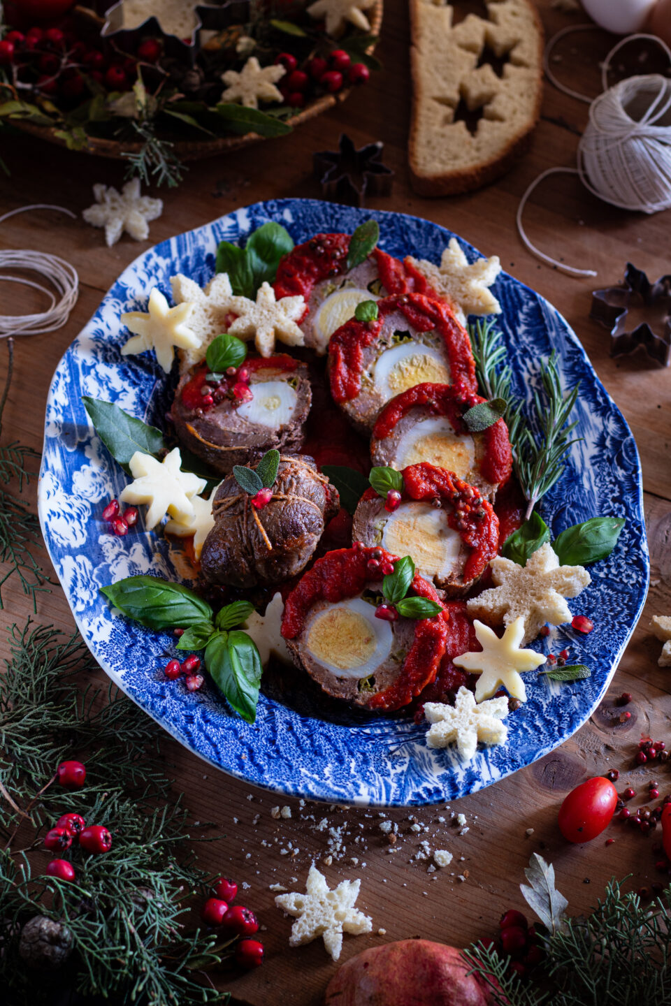 Tagliate il vostro arrotolato siciliano e servite con il sugo di cottura e qualche crostino di pane se volete (io ho realizzato delle decorazioni natalizie usando delle formine a stella che lo hanno reso ancora più scenografico).