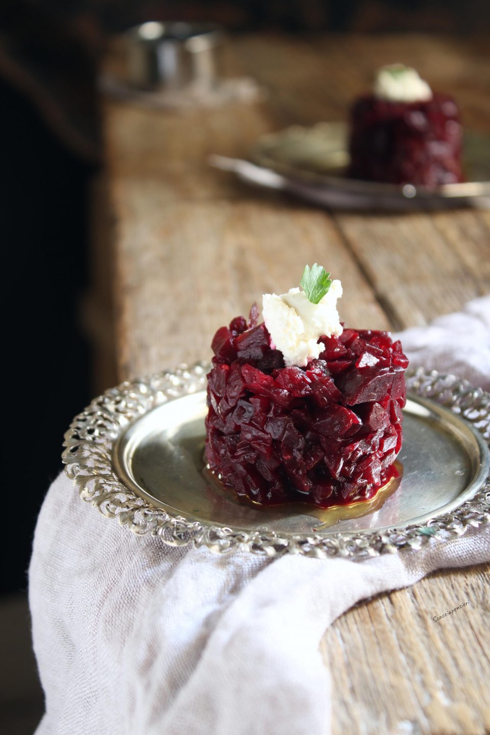Potete servire la Tartare di barbabietole rosse anche come accompagnamento ad un secondo di carne, a cui si abbina molto bene!