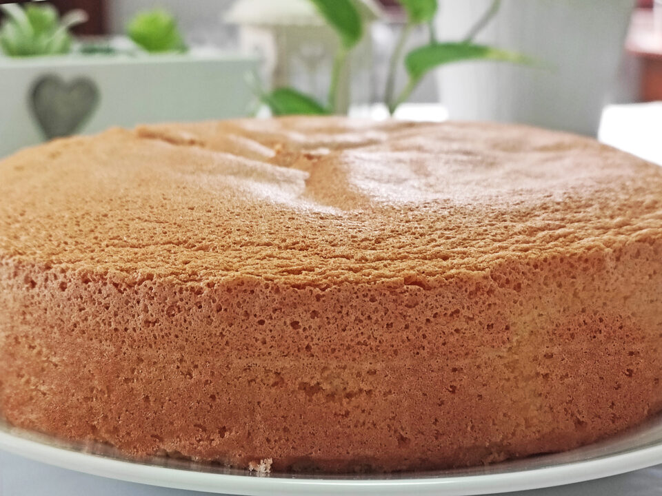 Il pan di spagna, nella ricetta originale non prevede l’utilizzo del lievito. Si gonfierà in cottura solo grazie alle uova perfettamente montate e alle bollicine di aria che sono state incorporate nel dolce.