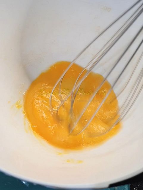 Mescola bene con una frusta l’uovo con lo zucchero