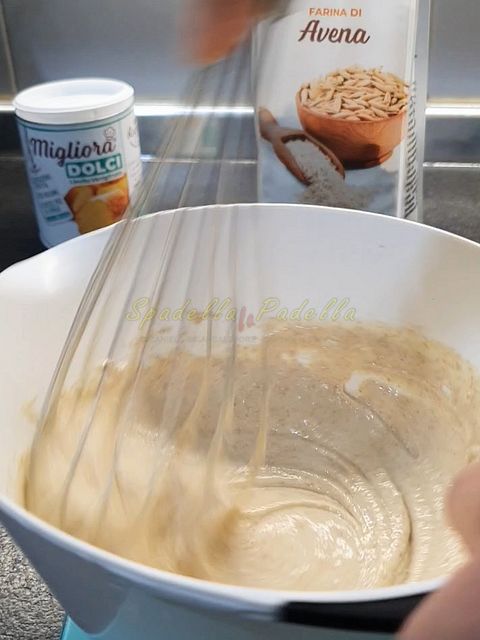Mescola bene, devi ottenere un composto liscio, omogeneo, senza grumi ma comunque corposo (non troppo liquido, eventualmente aggiungi un cucchiaio di farina)