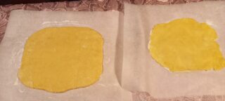 Spianate bene con un mattarello assicurandovi di non stendere l’impasto al di sotto degli 8-10 mm.