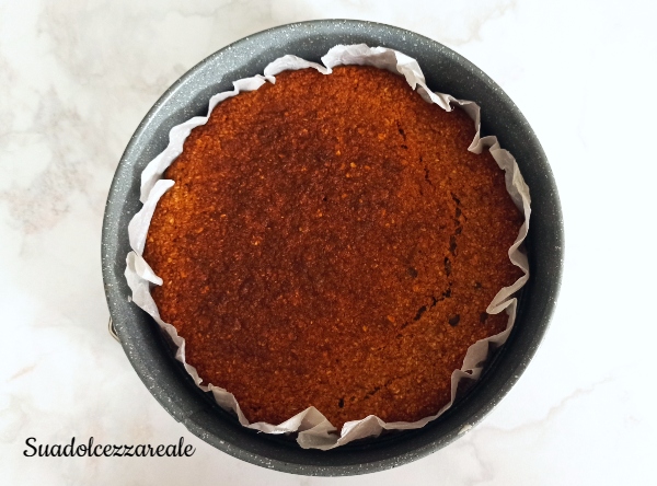 A questo punto unite le gocce di cioccolato e versate il tutto in una teglia a cerniera del diametro di cm.24 foderata di carta forno oppure precedentemente imburrata ed infarinata.