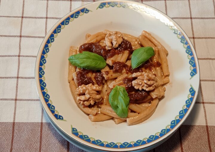 Occorrente per due piatti di Pasta con il Pesto di Noci e Pomodori Secchi