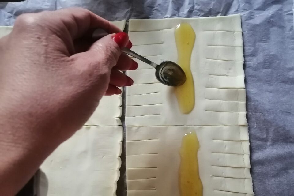 Nel mezzo del rettangolo formiamo una striscia di miele.