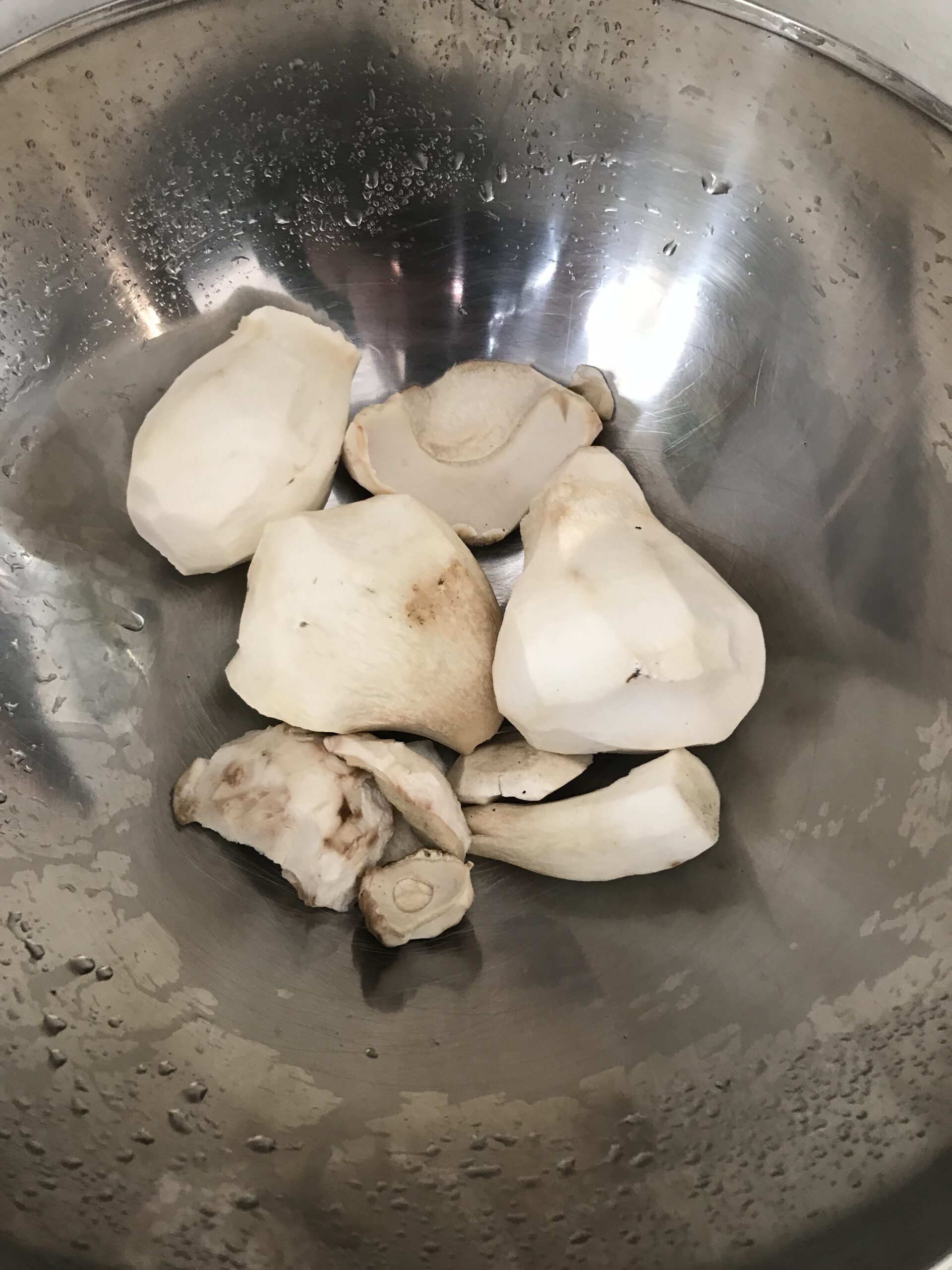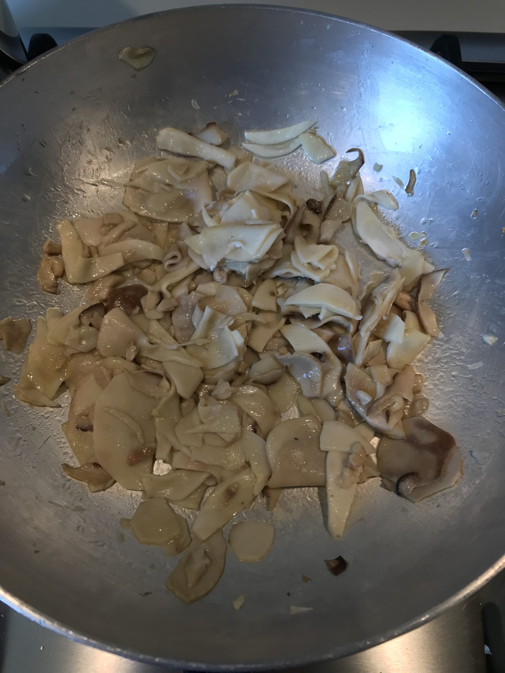 Importante: preferisco tagliare i funghi a lamelle anziché a tocchetti, per accorciare i tempi di cottura e mantenere il più possibile il sapore originale dell’ingrediente, in questo modo tendo anche ad evitare il più possibile di rendere i funghi “gommosi”.