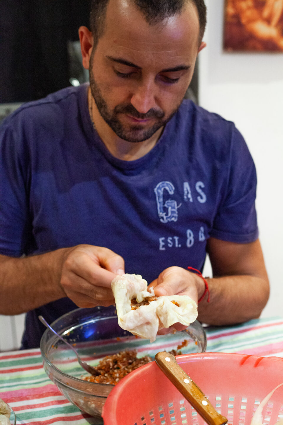 Per permettere che il fagottino sia ben sodo e chiuso potete tagliare la nervatura centrale della foglia di verza.