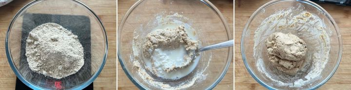 Mettete in una ciotola la farina di avena, il latte e il lievito istantaneo.